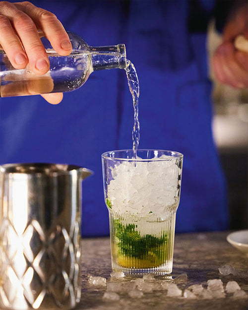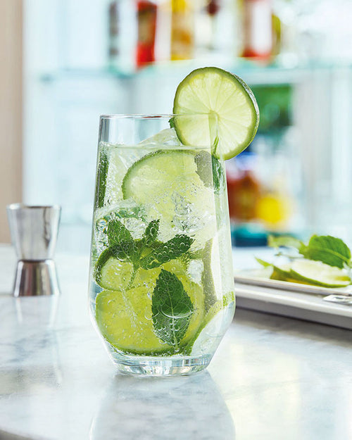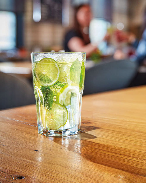 Le Mojito doit sa renommée à l'écrivain américain Ernest Hemingway qui en dégustait régulièrement au légendaire bar de La Havane la "Bodeguita del Medio" ! Il est traditionnellement servi dans un verre au design facetté, presque rétro : l'iconique gobelet à Mojito Granity... Restant, empilable et pratique, ses facettes mettent en valeur les feuilles de menthe et les rondelles de citron auxquelles s'accrochent les fines bulles effervescentes de l'eau pétillante.